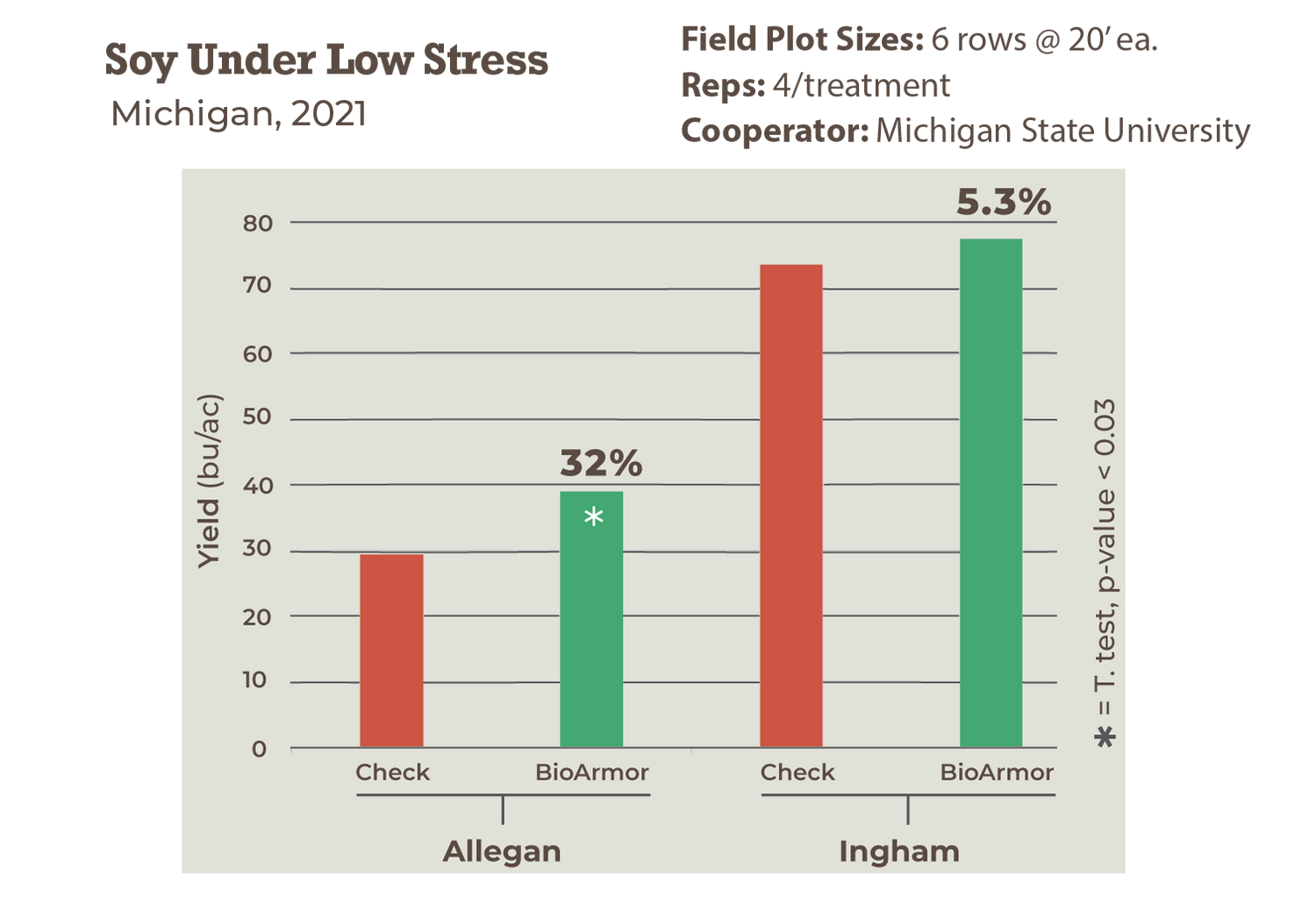 BioArmor-Corn and Soy is a dynamic blend of symbiotic microbes that impart stress tolerance, increase nutrient use efficiency and enable natural crop yield increases. This dynamic formula includes multiple strains of endophytic fungi and rhizospheric bacteria that work synergistically to provide healthier plant function.